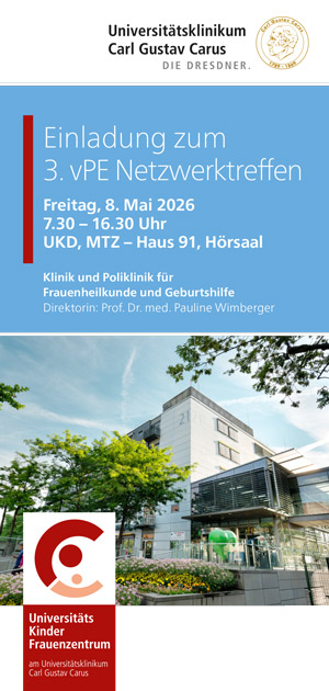 wir freuen uns sehr Sie zum 3. vPE Netzwerktreffen am 8. Mai 2026 am Universitätsklinikum Carl Gustav Carus Dresden begrüßen zu dürfen!
